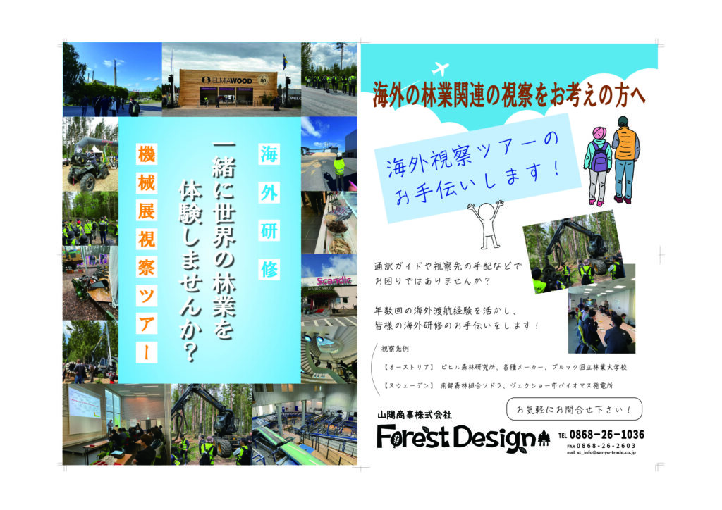 毎年ヨーロッパの林業視察を企画運営を行っている弊社ではそのようなお困りごとのお手伝いをいたします。