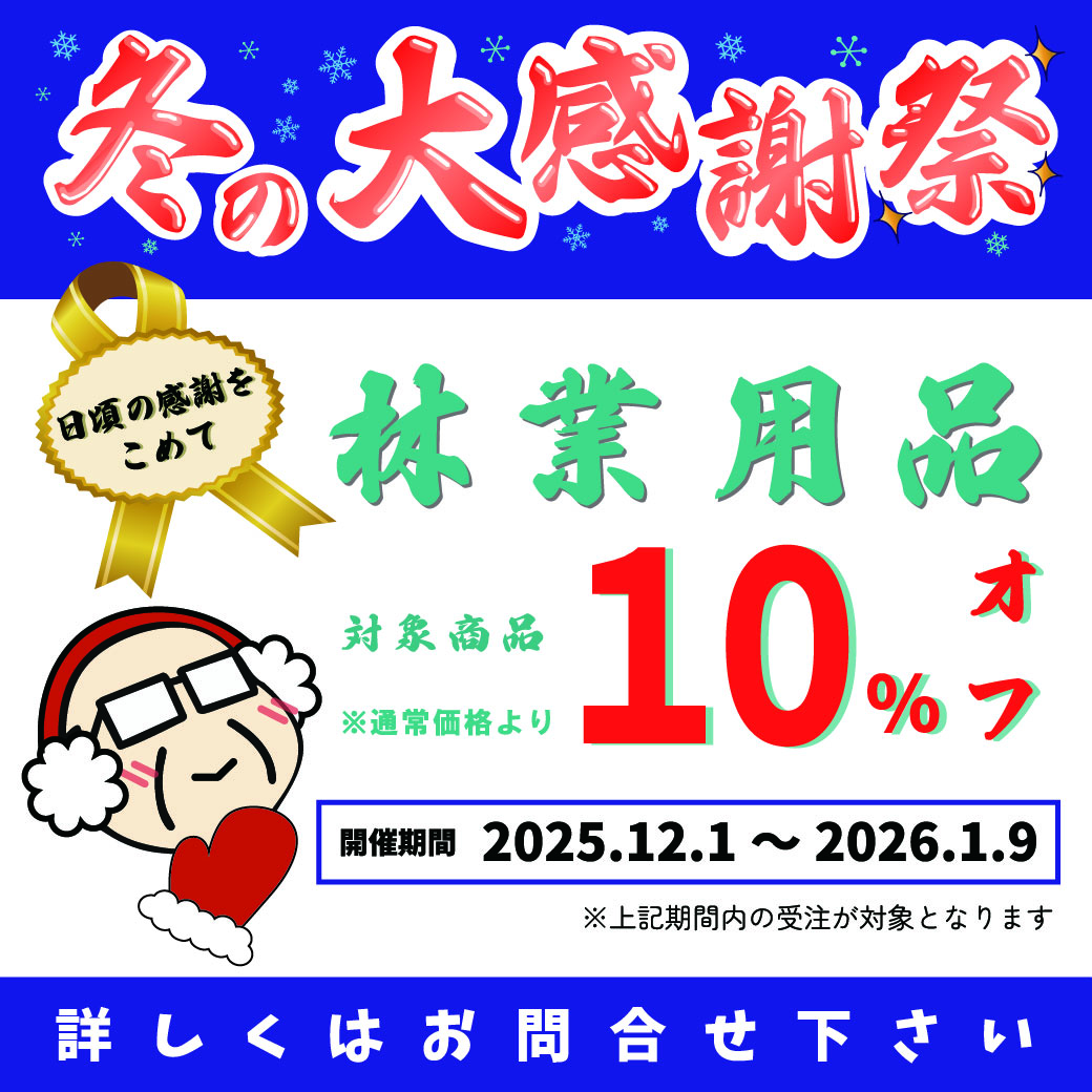 日頃の感謝を込めて期間限定で弊社取り扱いの林業用品を通常価格の10%OFFでご提供します